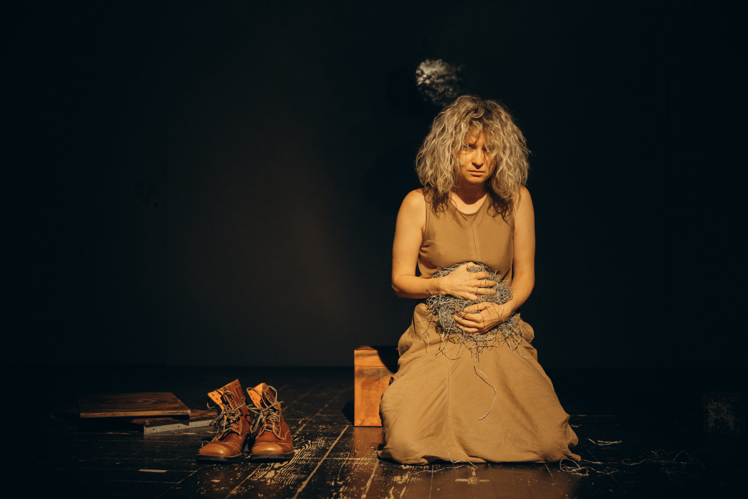 Monodram "Kotka w pamięć o ciemności" Tetiany Lucheiko, oparty na sztuce Nedy Nezhdany, ukazuje historię kobiety z Donbasu, która po utracie domu sprzedaje rasowe kocięta. Spektakl porusza temat traumy wojennej i życia na okupowanych terenach Ukrainy, przekonując, że rozmowa o tych doświadczeniach prowadzi do zrozumienia i kreowania tożsamości. Mimo ciemności, która otacza bohaterkę, wierzy ona w otwieranie się kolejnych drzwi w przyszłość.